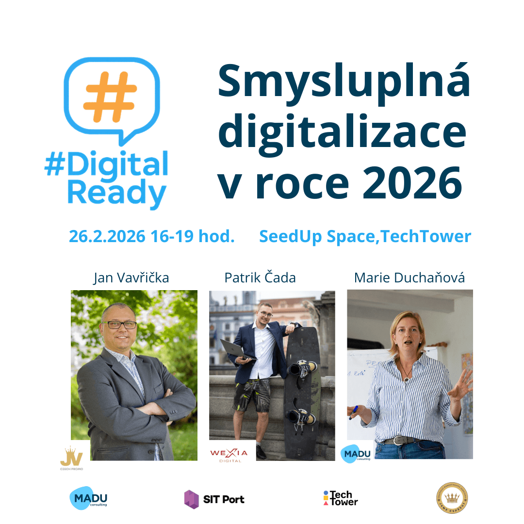 Únorové vydání akce #DigitalReady se zaměří na to, jak mohou firmy v roce 2026 uchopit digitalizaci strategicky a s jasným přínosem pro svůj byznys. Účastníkům nabídne praktický pohled z praxe, konkrétní zkušenosti a inspiraci, jak nastavovat procesy a zavádět digitální nástroje – včetně AI – tak, aby podporovaly efektivitu, přehlednost a dlouhodobý rozvoj firmy.